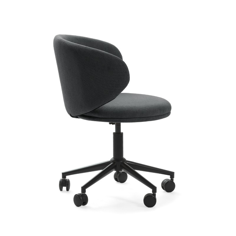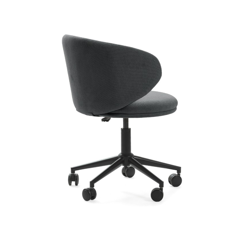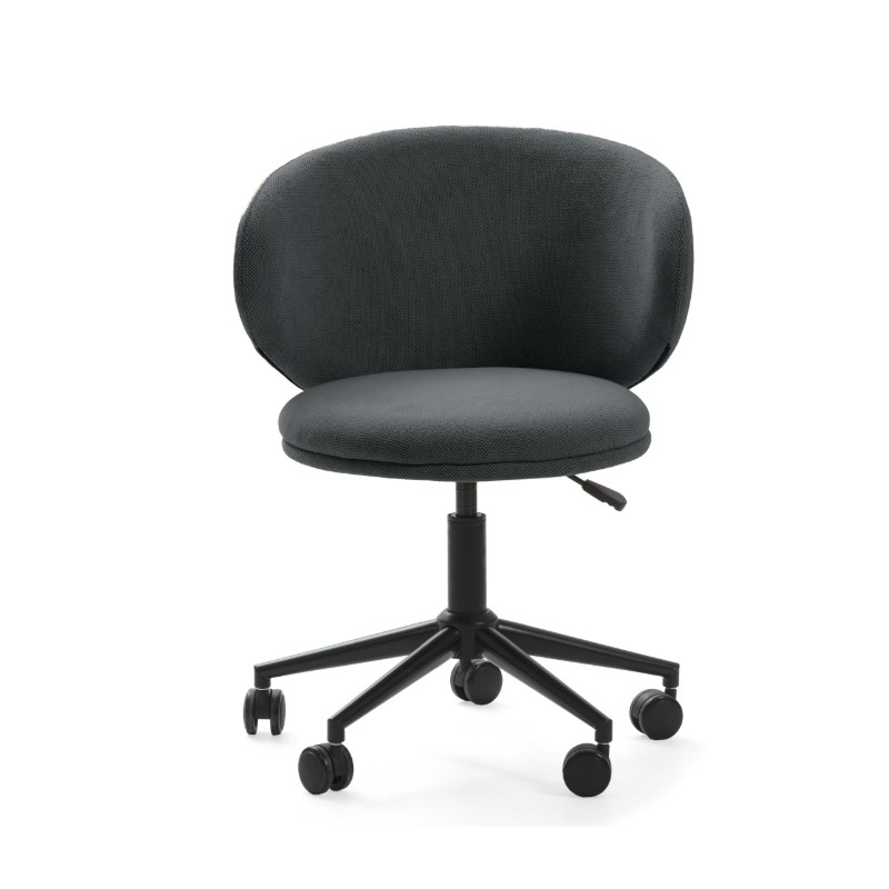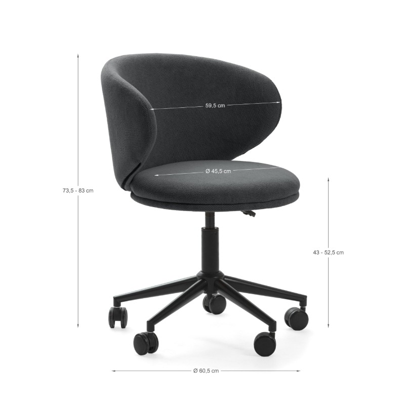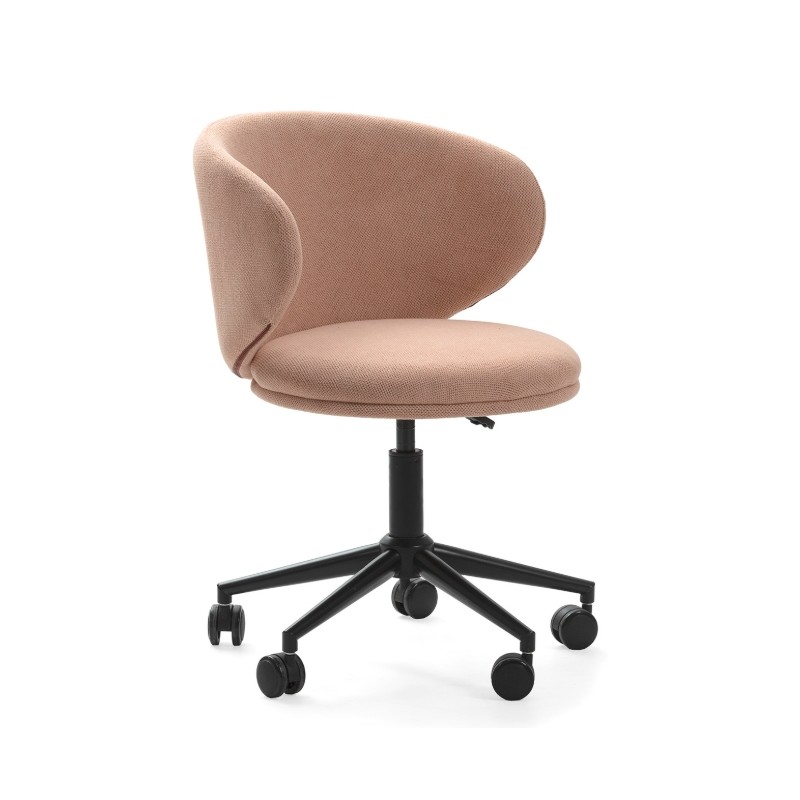 Silla de escritorio de altura regulable con pistón de gas. Asiento acolchado tapizado en 2 colores. gris oscuro y rosa