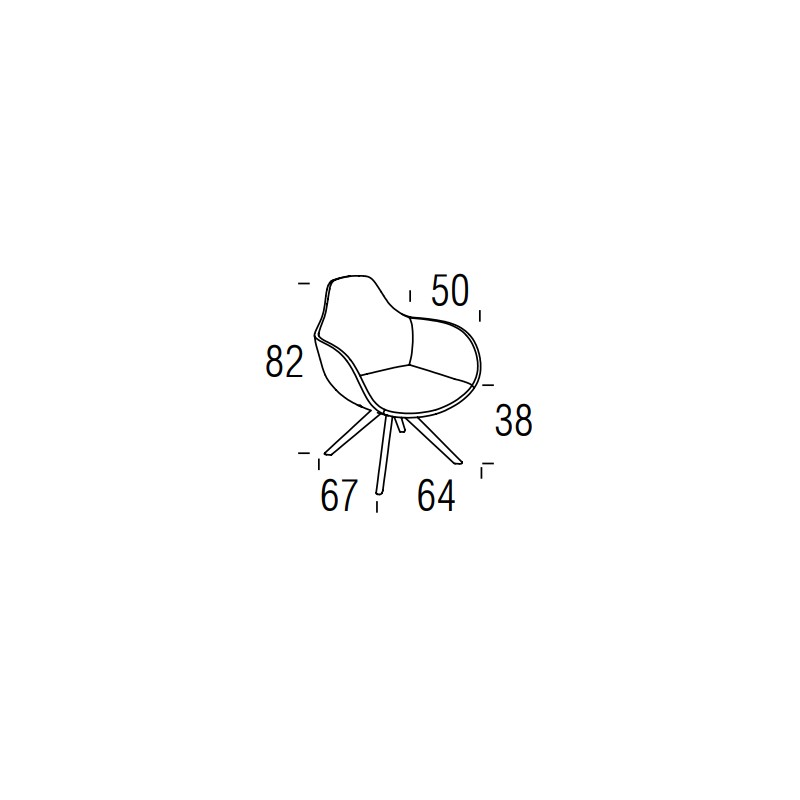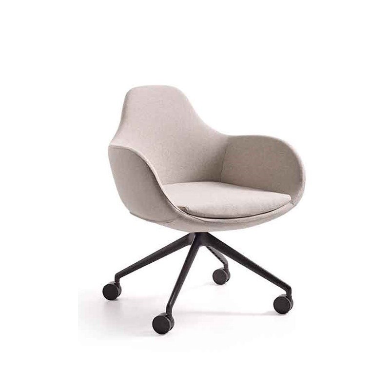 Silla de aspecto ligero y cuidada ergonomía con base giratoria y ruedas.