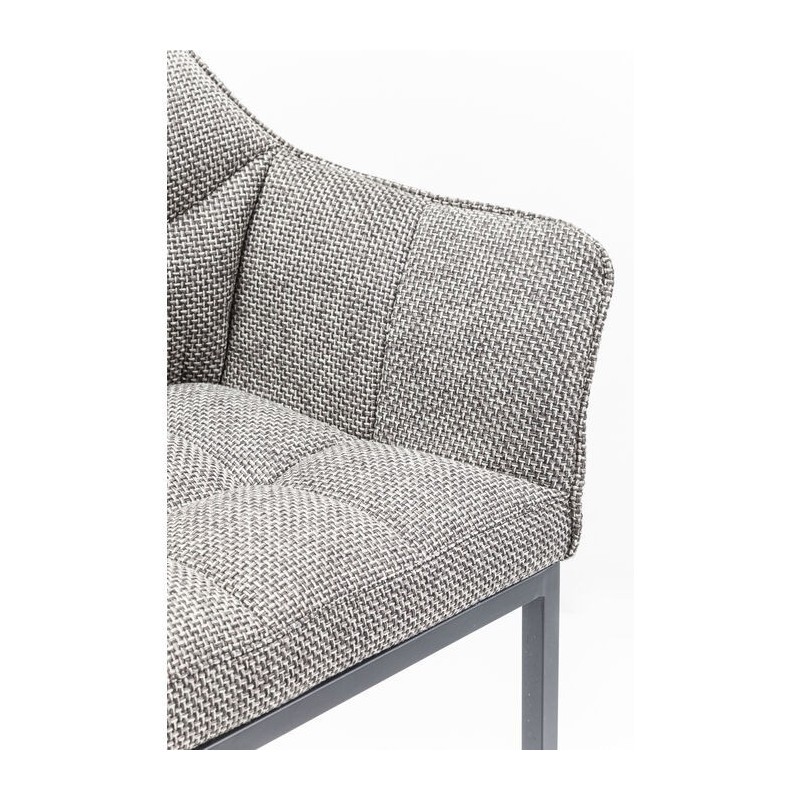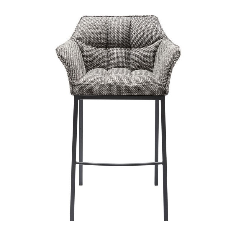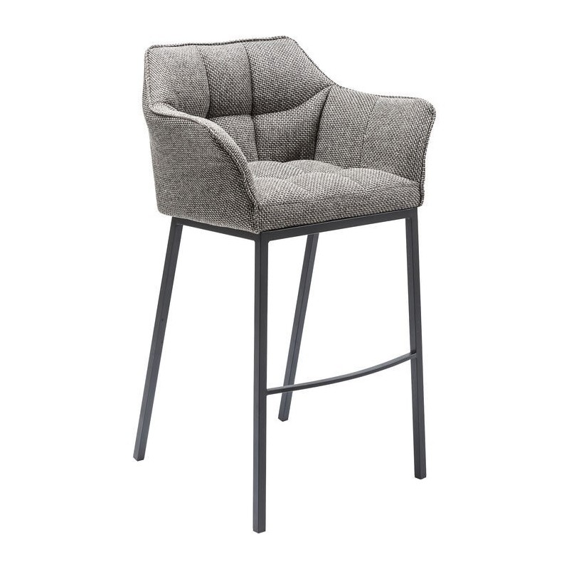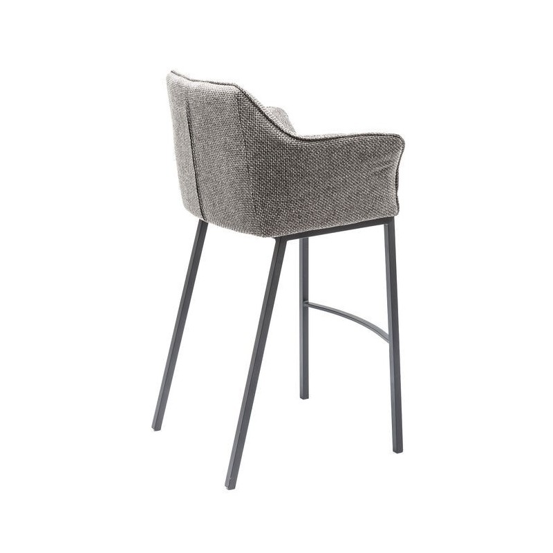 Taburete de bar con apoyabrazos en gris con respaldo y cómodo reposapiés. Asiento muy cómodo gracias a la lujosa tapicería y el brazo y respaldo circundantes.