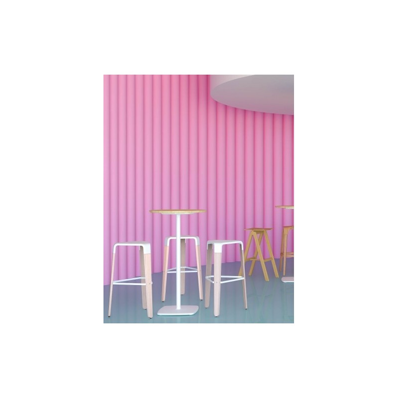 Taburete con asiento de polipropileno reforzado con fibra de vidrio, base de madera de haya maciza.