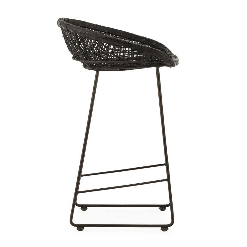 Taburete de 66 cm de altura con asiento de mimbre trenzado a mano acabado negro y patas de metal