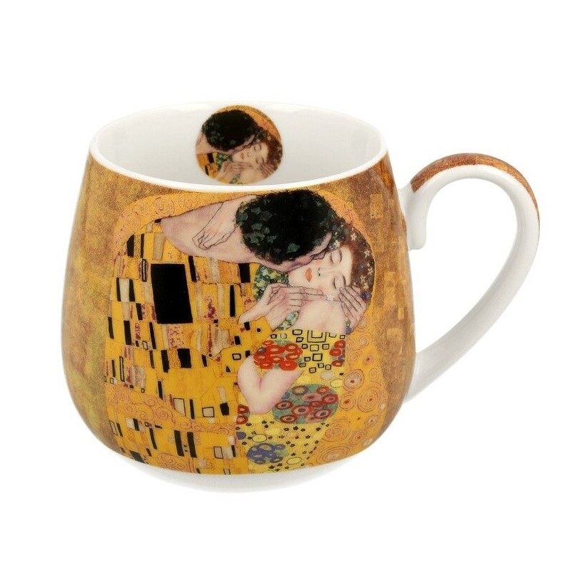Taza barril 430 ml EL BESO Clásica inspirada en Gustav Klimt, parte de la serie Art Gallery, elaborada en porcelana New Bone China, caracterizada por un elegante y natural color blanco crema con un delicado brillo, además de una excepcional durabilidad.