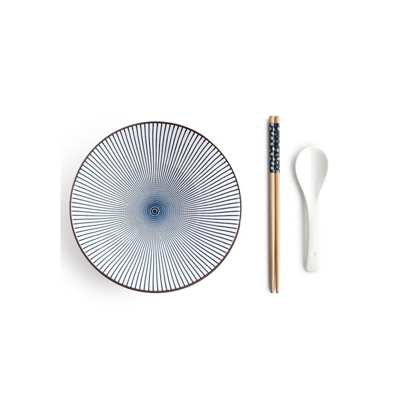 Incluye cuenco de porcelana resistente, palillos de bambú y cuchara.