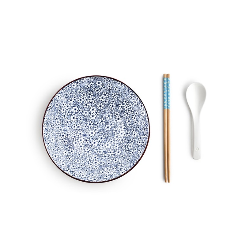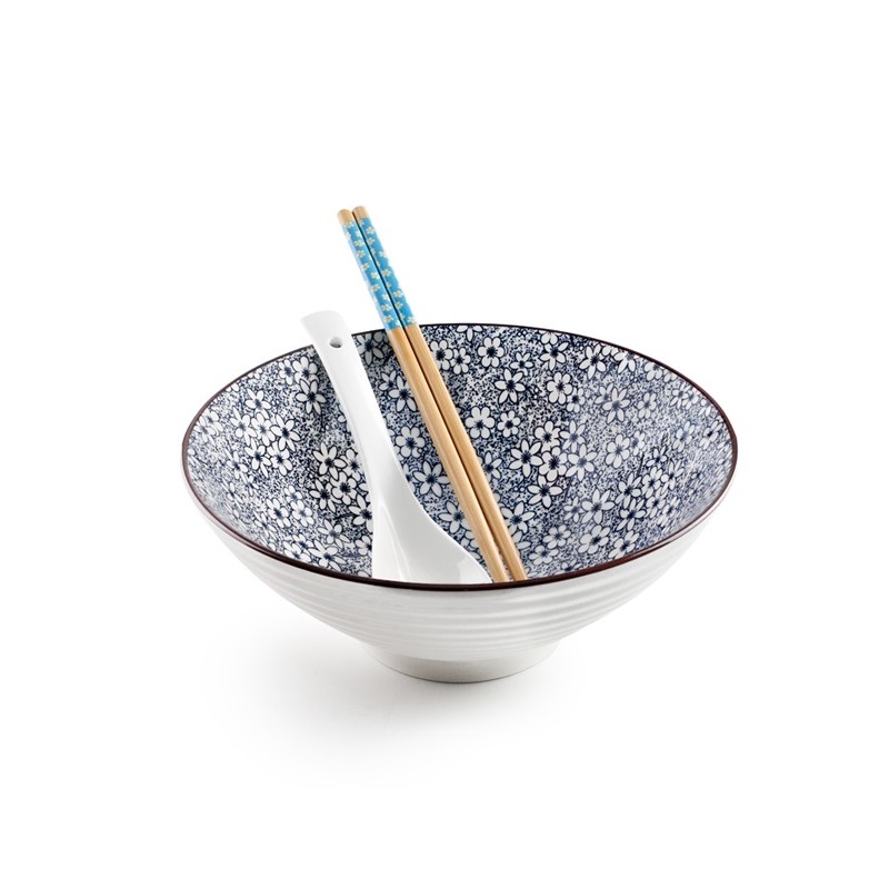 Incluye cuenco de porcelana resistente, palillos de bambú y cuchara.
